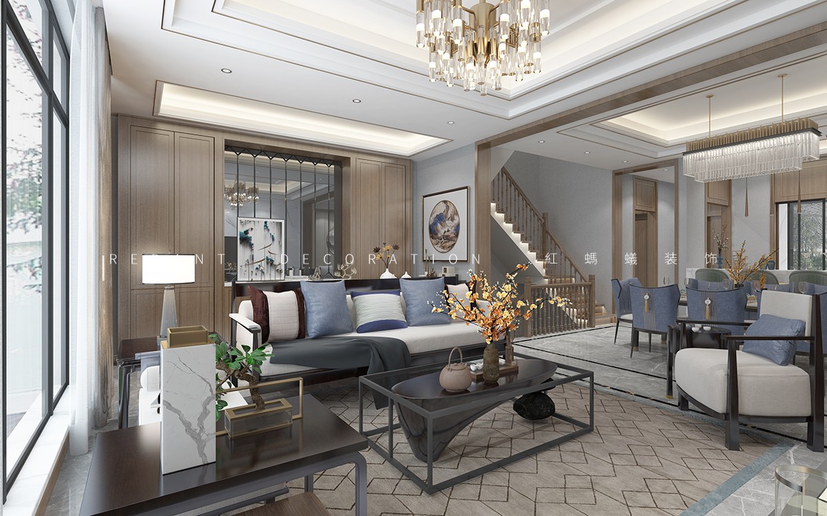 领岛别墅 | 420㎡新中式风格别墅装修效果图