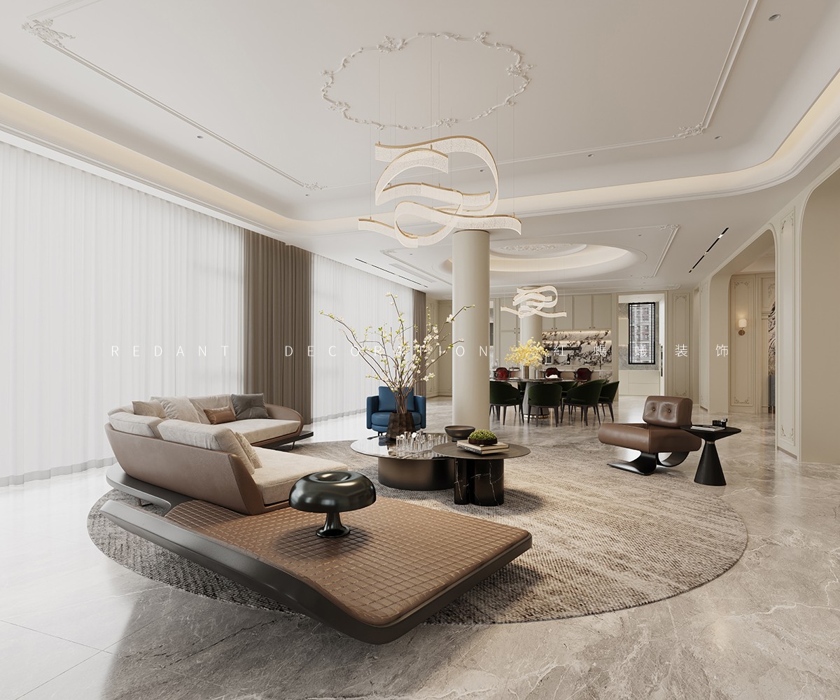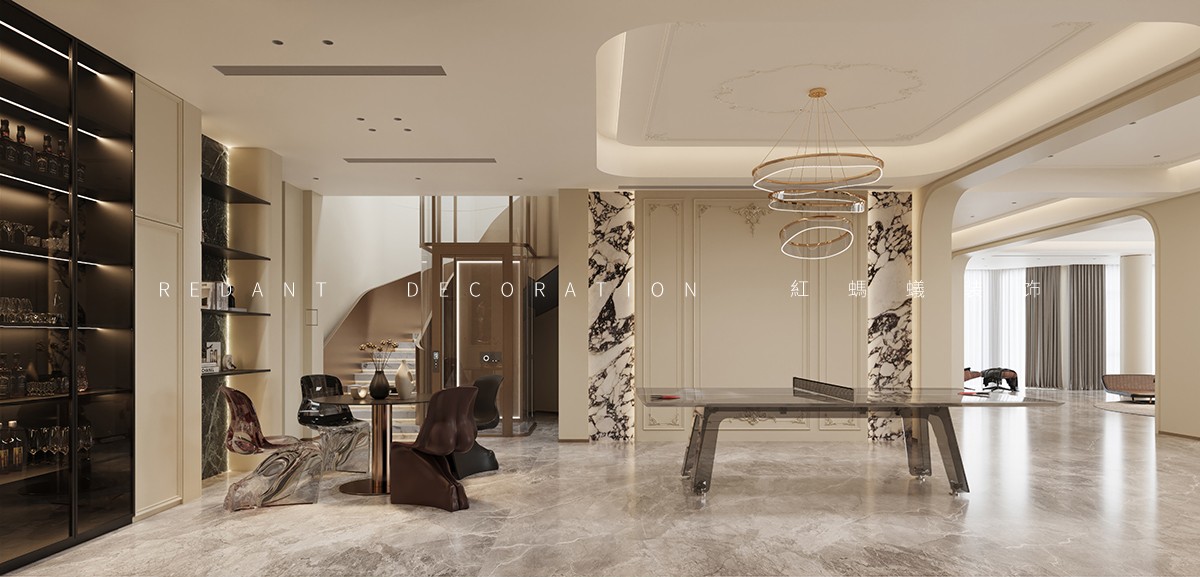 本户型设计以满足业主多元需求为核心,对空间进行了创新且实用的规划。一层打造为兼具社交、休闲等功能的公共区域,通过合理的区域划分与家具布置,为业主提供了一个能与亲友畅快交流、放松身心的场所;上层则围绕业主的居住私密性与舒适性展开设计,卧室等空间在布局和尺度上精心考量,力求为业主营造出静谧、自在的休憩环境。在交通动线方面,对楼梯等垂直交通设施以及各功能区的衔接部分进行优化,让业主在不同楼层、不同功能区域间的移动更加便捷流畅。同时,利用合理的空间布局,充分引入自然光线与通风,提升了室内的整体舒适度,使整个户型既富有设计感,又能切实为业主带来高品质的居住体验。