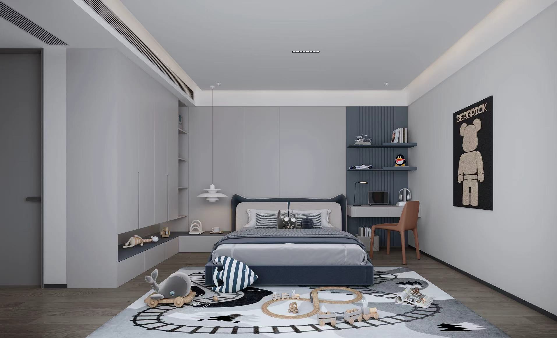 二、三层聚焦全龄居住,主卧、长辈房、儿童房及次卧各有风格,兼顾舒适、私密与实用。动线规划流畅,全景落地窗、挑空设计与无主灯系统,优化采光通风,强化空间层次与艺术氛围。