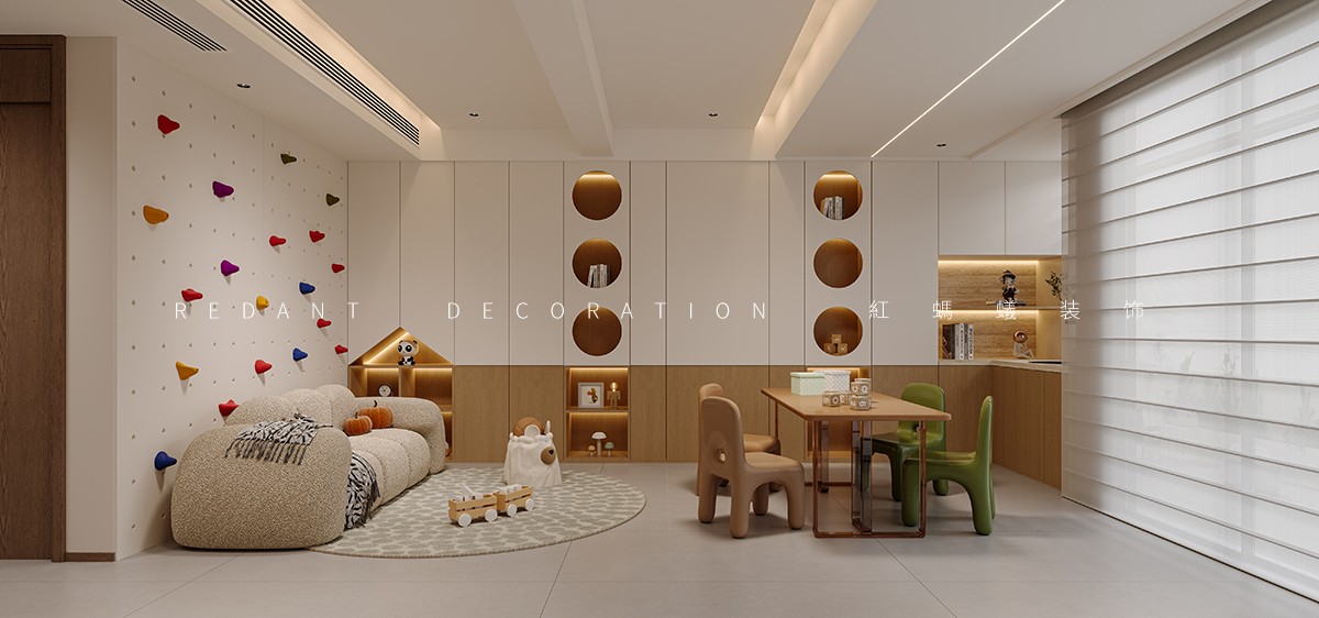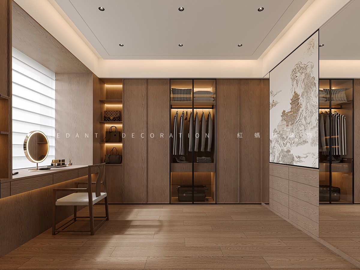 布局采用开放式联动设计,客餐厅、茶区与厨房通透衔接,消除空间壁垒,形成流畅的社交与家务动线;主卧衣帽间整合梳妆区,兼顾收纳与梳妆功能,提升居住私密性与实用性。