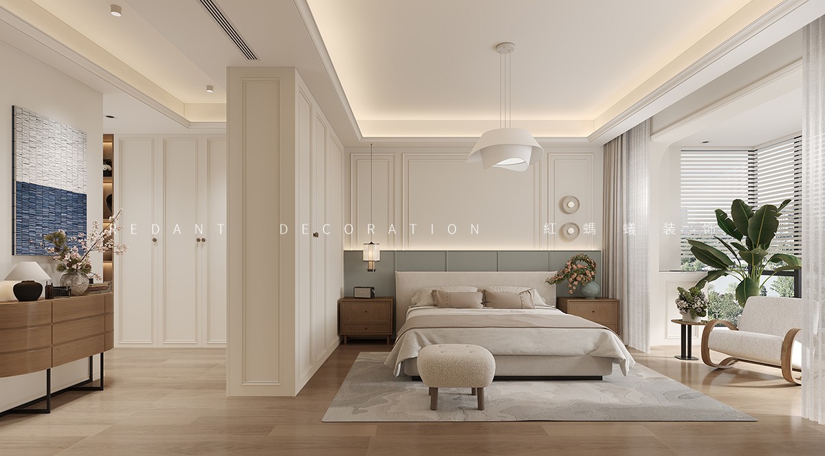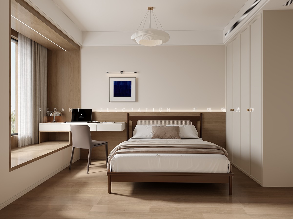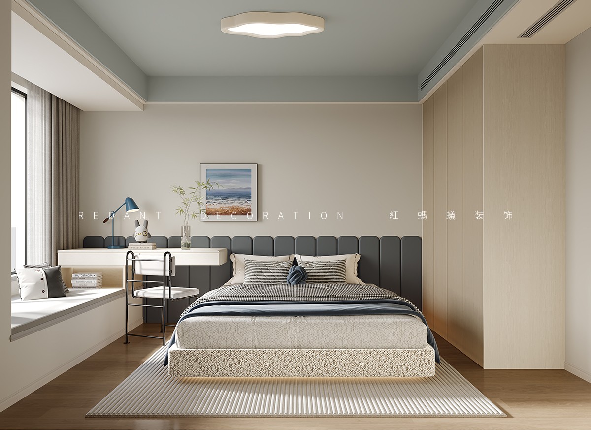 本方案以暖白、浅橡木色为基底,搭配实木、棉麻与低饱和蓝调,打造宜居空间。客餐厨一体化布局,浅米沙发配实木茶几,蓝地毯成视觉亮点,洞洞板打造音乐角;玄关实木柜配蓝调挂画,拱门与百叶窗增层次;卧室浅橡木背景墙配通顶衣柜,悬浮飘窗书桌兼顾办公阅读。设计以原生材质、和谐色彩、人性化规划,融合自然治愈、个性表达与现代生活需求。