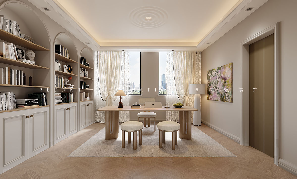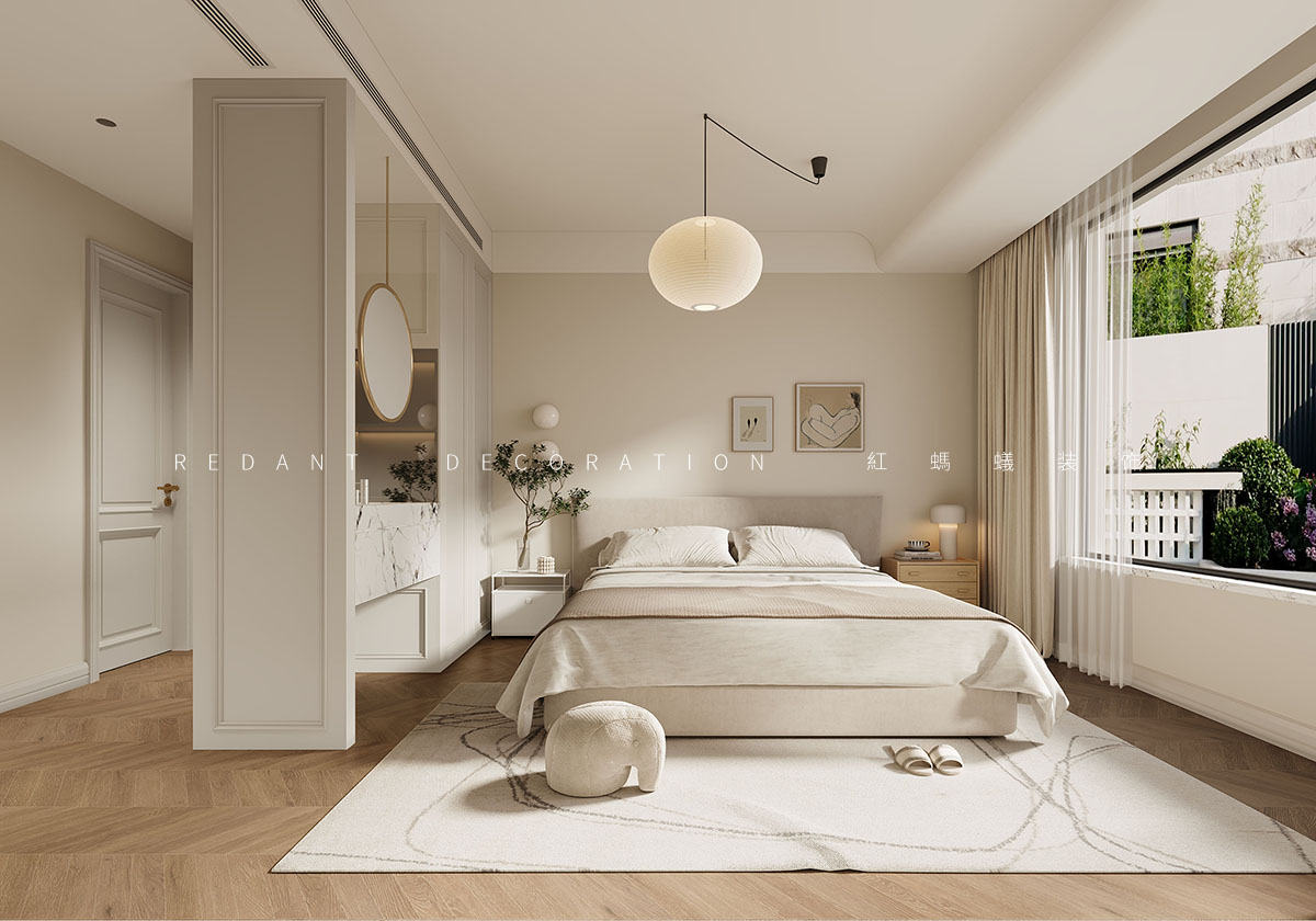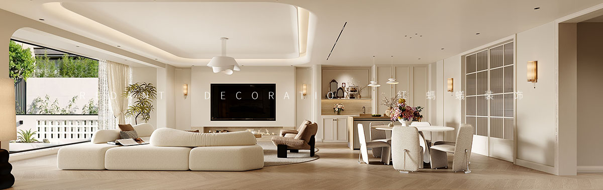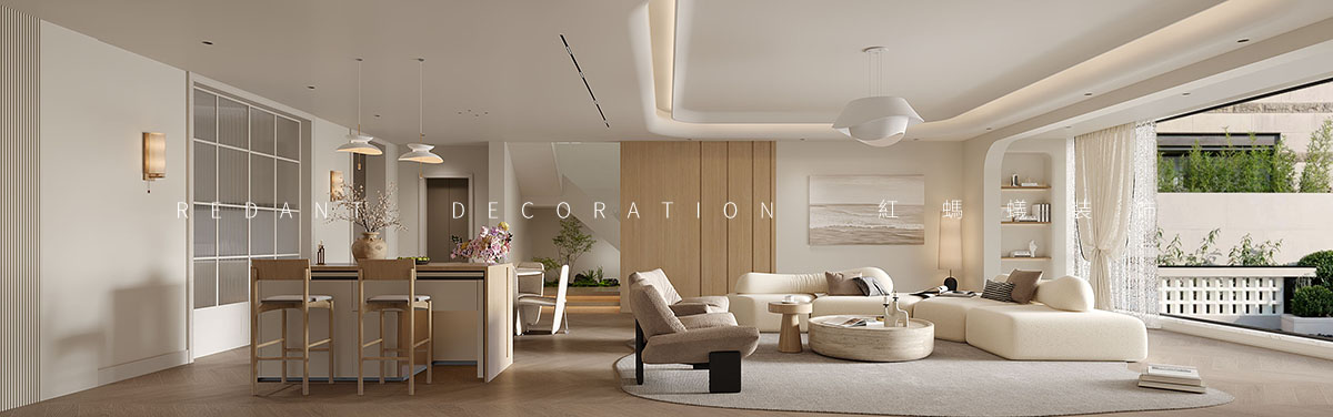 本项目以“温润松弛・通透共生”为理念,打造现代奶油风空间,以奶油白、浅杏色为基底,搭配浅原木、石材与香槟金点缀,弱化甜腻感。一层LDK一体化布局,螺旋楼梯为视觉核心,全屋通铺人字拼木地板,配模块化沙发、石质茶几,落地窗打通室内外;二层私密休憩区延续基调,主卧护墙板加石膏线条勾勒质感,分层照明配软包床头、亚麻床品,角落设懒人沙发与绿植,平衡结构感与居住温度。